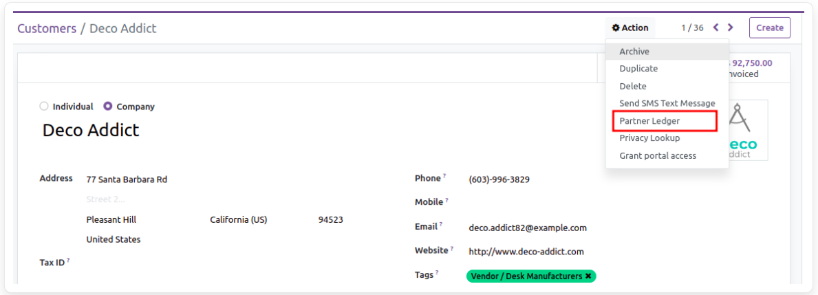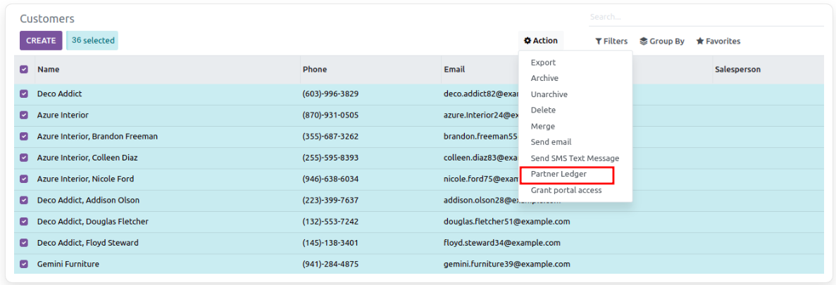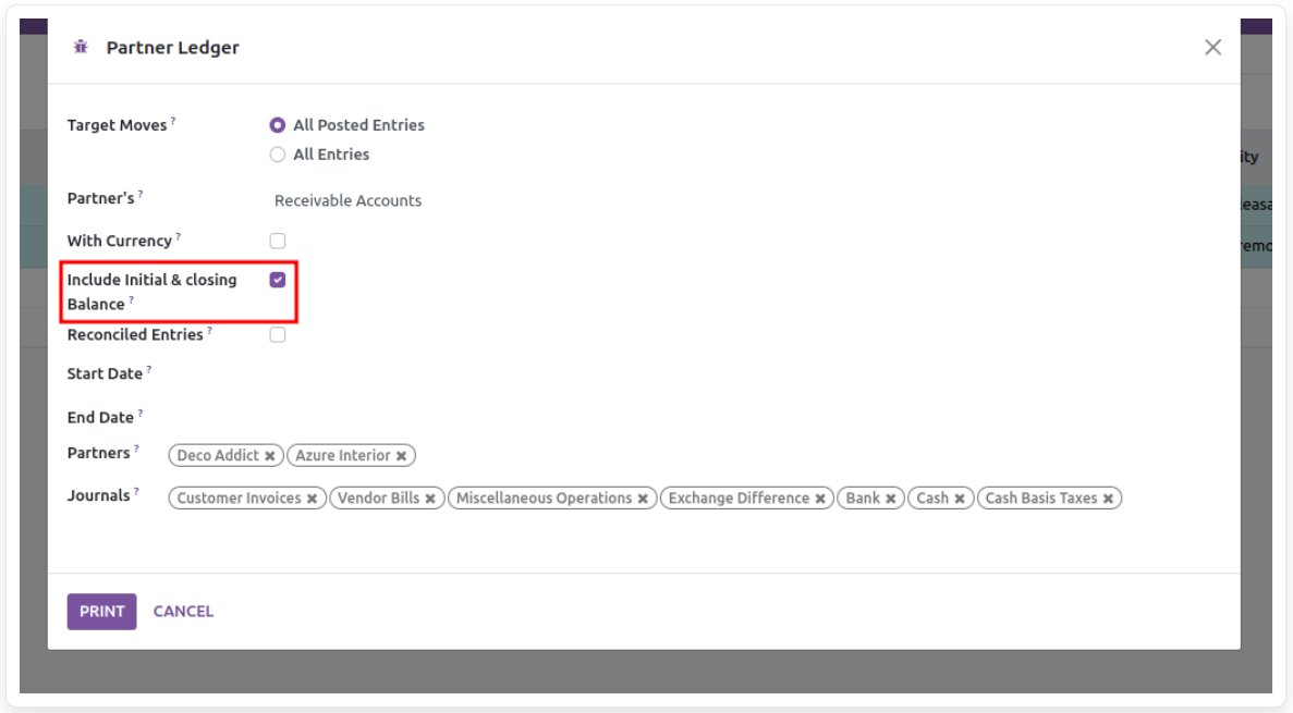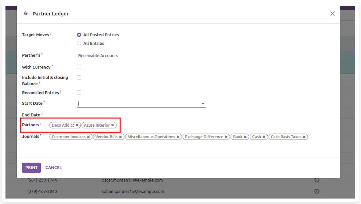 Creates a partner ledger report by filtering partners